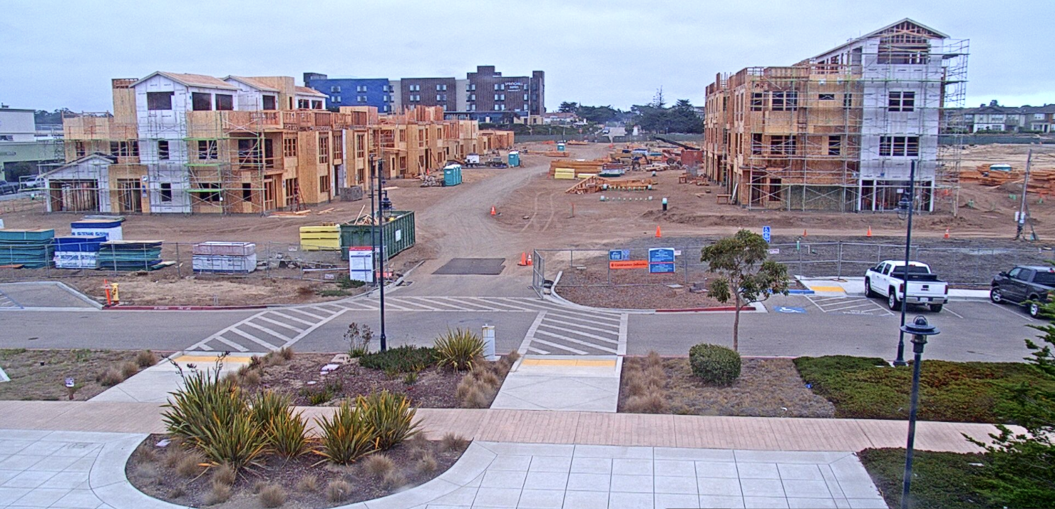 Construction is underway on six commercial buildings that will populate a highly anticipated, mixed-use open-air center in Marina on the Monterey Peninsula called The Dunes Promenade. Set in the midst